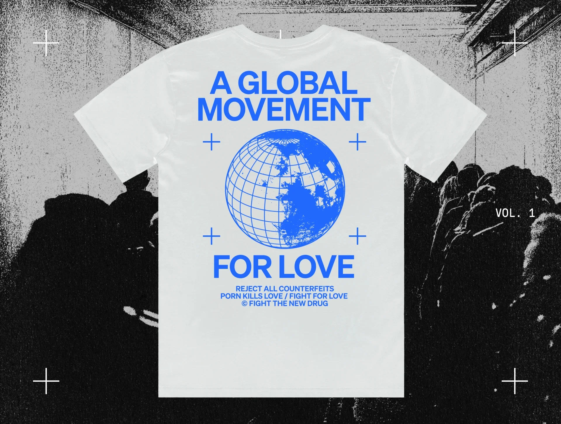 Designed for Fight the New Drug, this shirt embodies the movement’s call to authentic love with bold blue ink on a heavyweight white tee. Featuring a distinctive front artwork placement, the design pairs the primary message, A Global Movement for Love, with the subtext, Reject All Counterfeits—a visual statement that’s both striking and sincere.